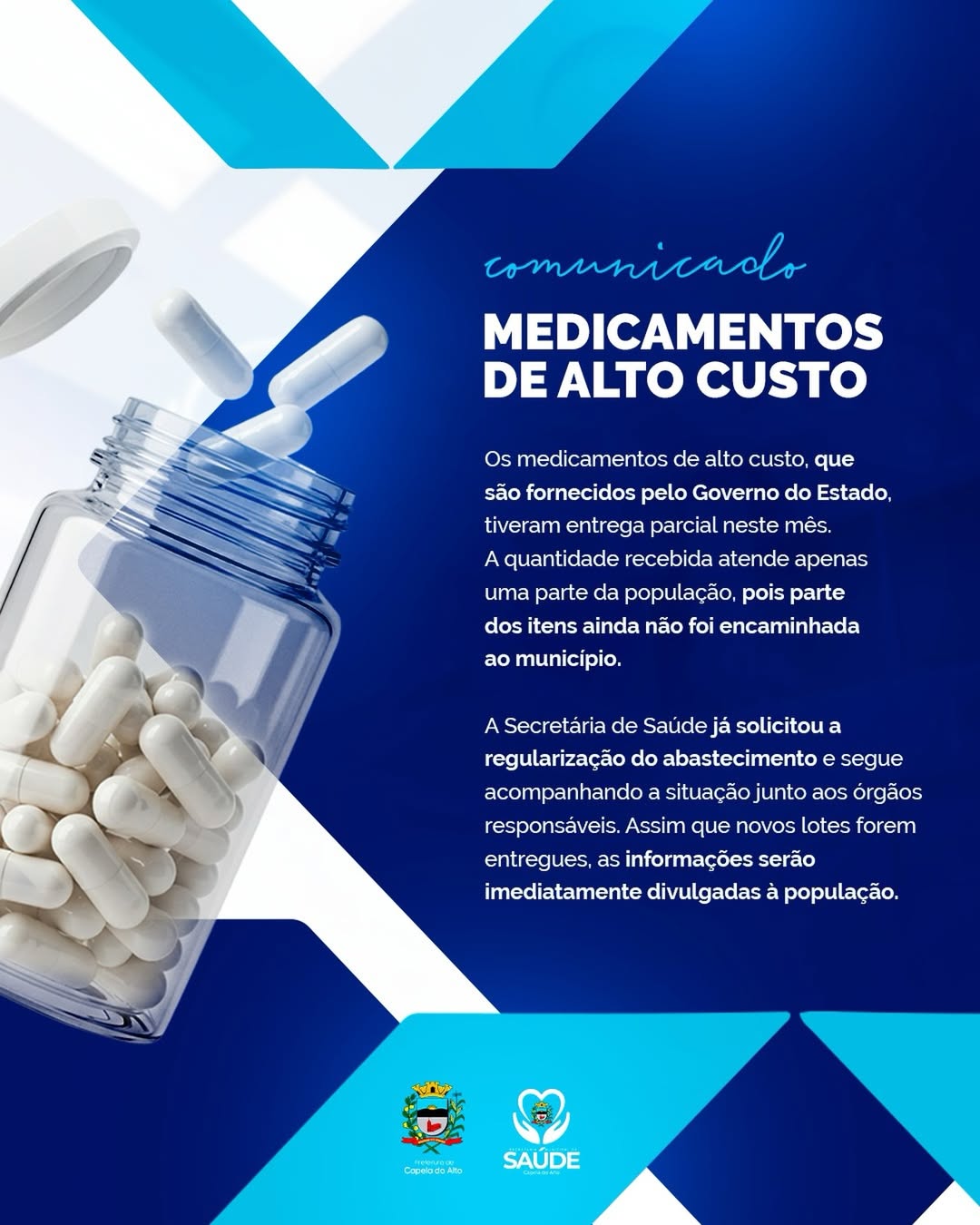 A Prefeitura de Capela do Alto, por meio da Secretaria Municipal de Saúde, informa que os medicament...