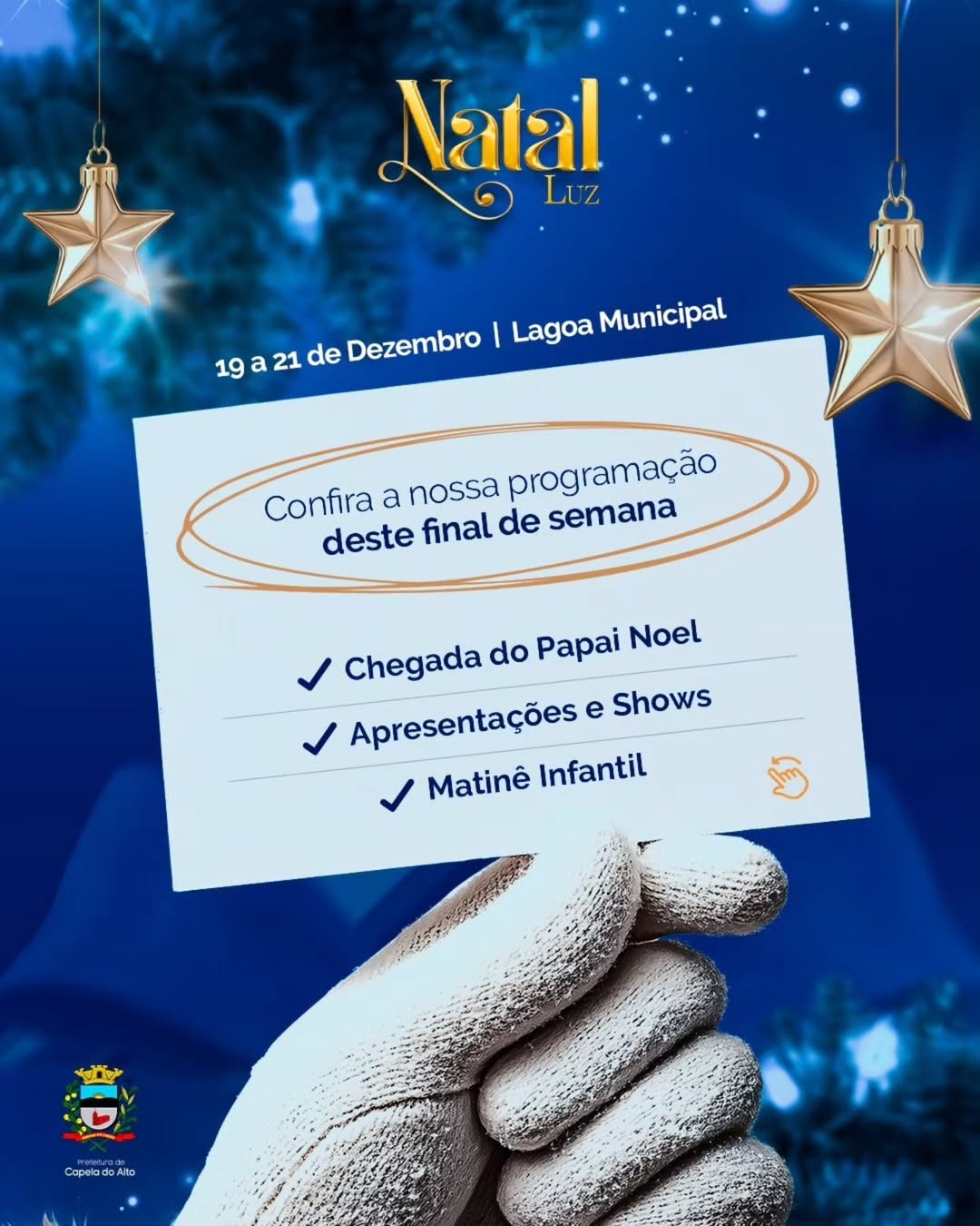 O Natal Luz de Capela do Alto continua neste final de semana, dias 20 e 21 de dezembro, com uma prog...